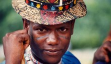 This was not a spaghetti western scene. This Navajo dancer with his traditional feathered headdress was taking part in the annual Pow Wow. July 1999. Ceci n’est pas une scène extraite d’un western spaghetti. Ce danseur Navajo avec sa coiffe de plumes traditionnelle participait au Pow Wow annuel. Juillet 1999.
