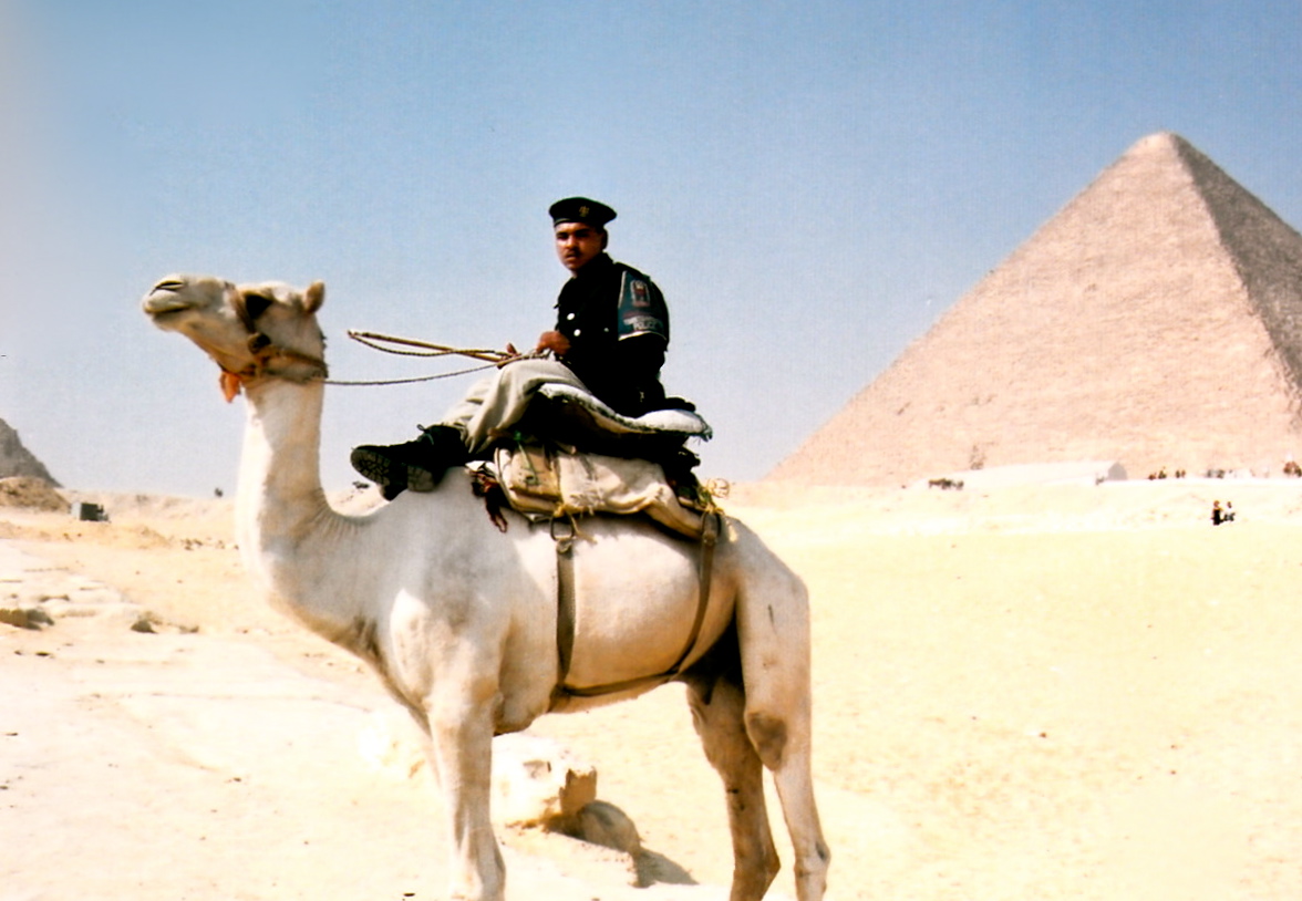 Beaucoup de gens ont vu les incroyables sites historiques de Gizeh mais peu savent que Gizeh est la troisième plus grande ville d’Egypte. La pyramide de Khéops et tous les autres monuments ne restent jamais sans surveillance. Novembre 2002.