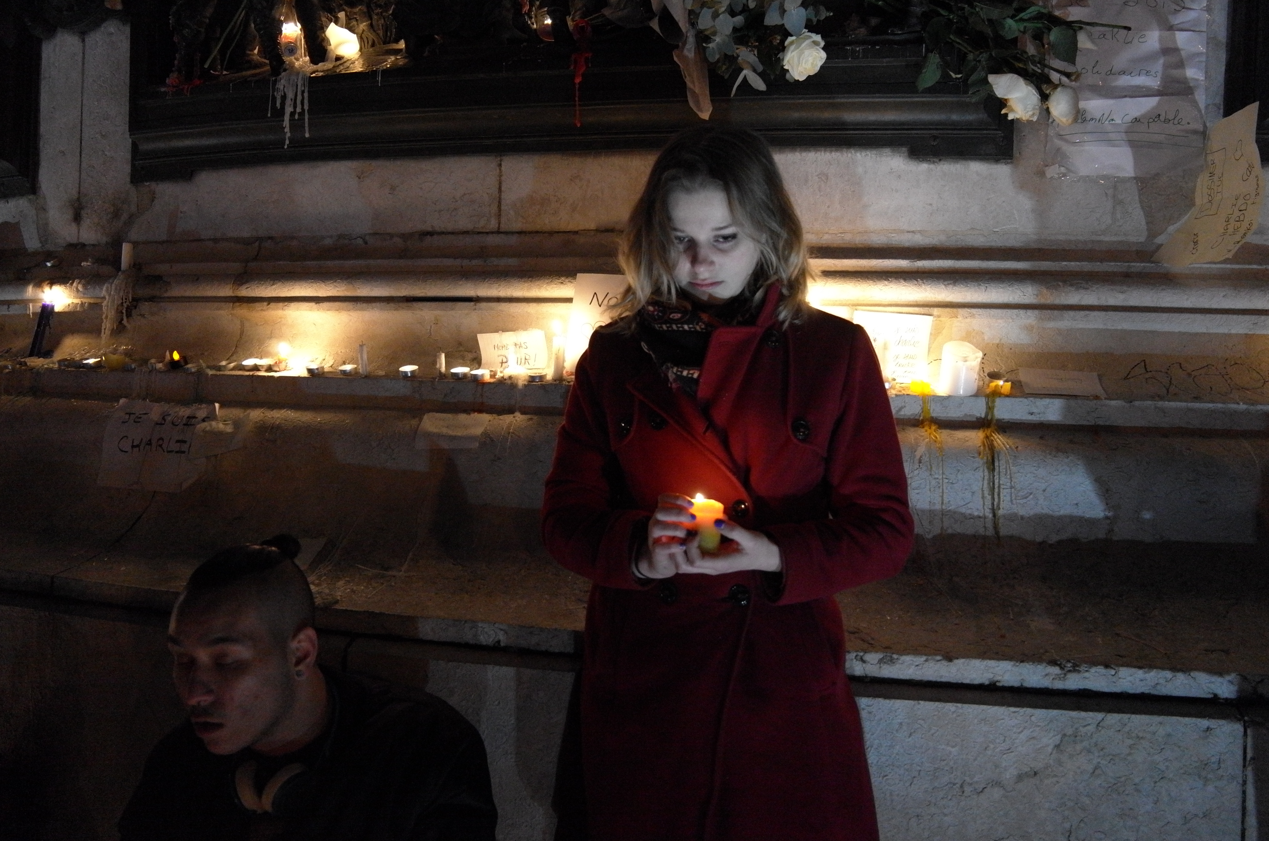 Thousands of people, including young Muslims, have flooded Place de la Republique in a vigil to pay tribute to the victims of the attack on satirical magazine Charlie Hebdo. The atmosphere remained peaceful and full of emotion. January 2015.