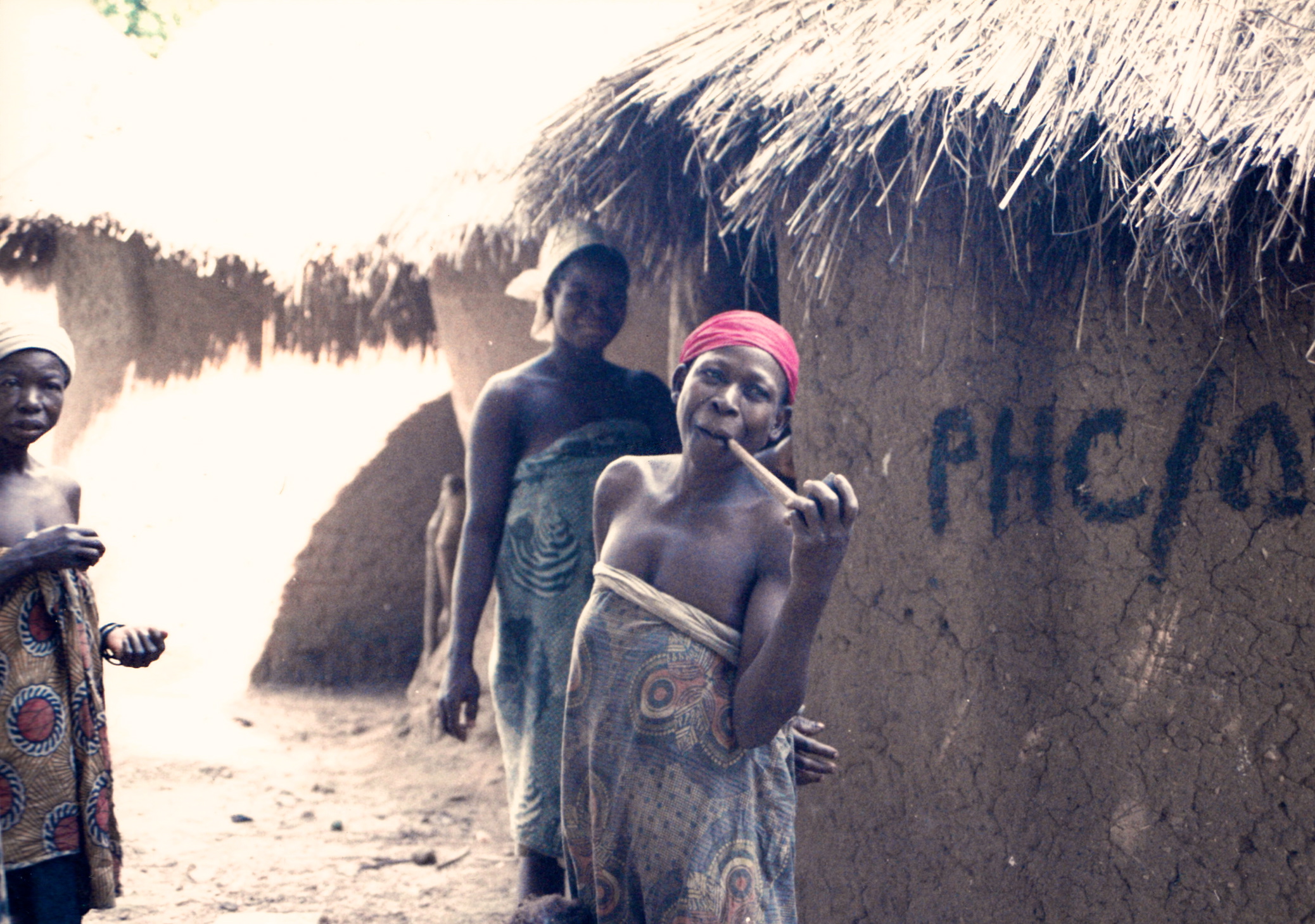 Suleja in central Nigeria is recognized as a centre of excellence for traditional West African pottery. In a village close to the city, I met this lady who had a mocking smile and was smoking pipe. November 1990.