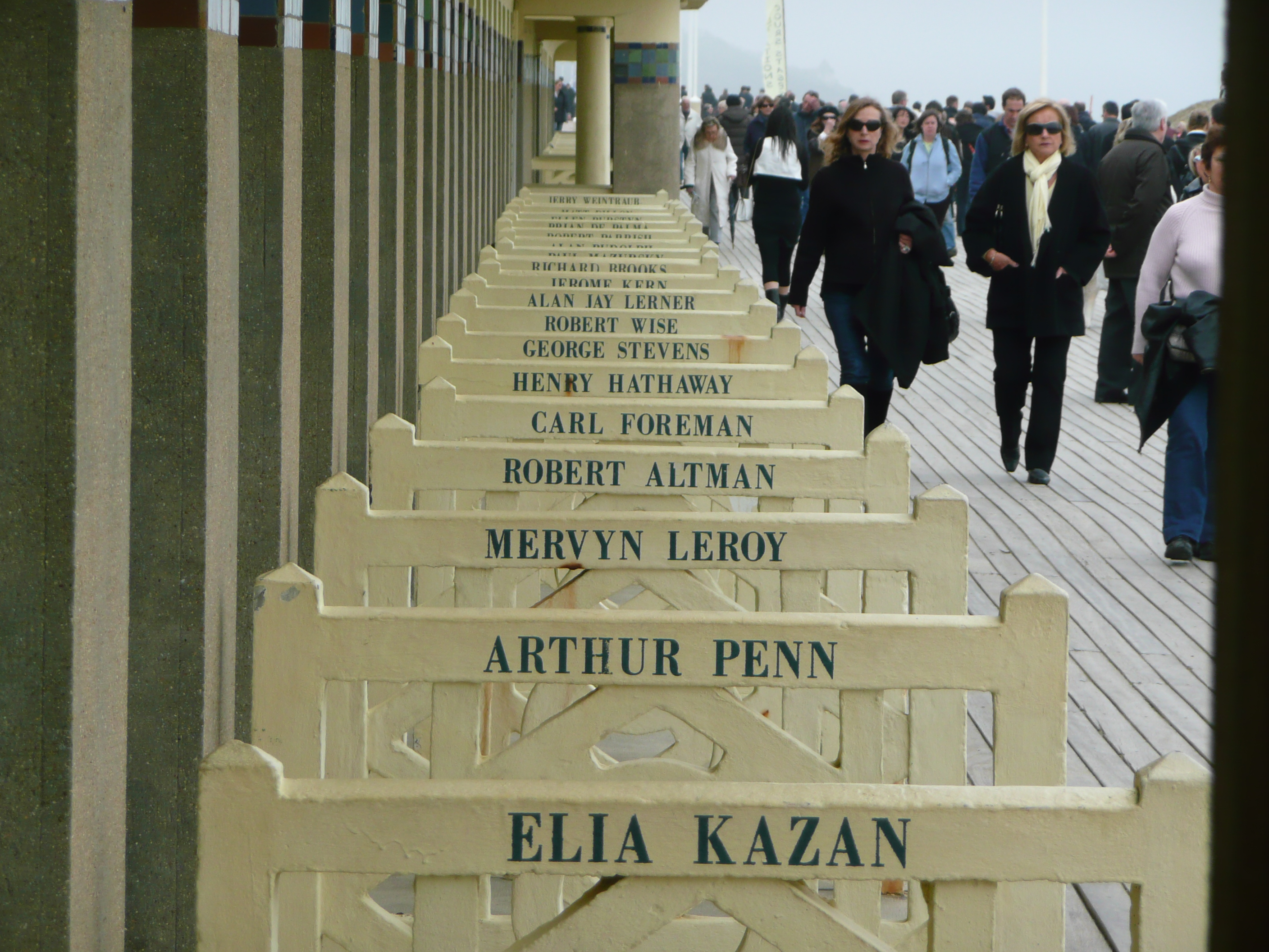 One of the most famous places in Deauville is its sea front and its « planches », a walk that was designed in 1923 to protect women wearing long dresses from the sand. The beach cabins all hold the name of a movie star who has previously been to Deauville’s American Cinema Festival. April 2009.