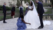 A bride is getting ready for the photoshoot outside the museum of mother of pearls in Méru. September 2020. Une mariée se prépare à la session photo à l’extérieur du musée de la nacre de Méru. Septembre 2020.