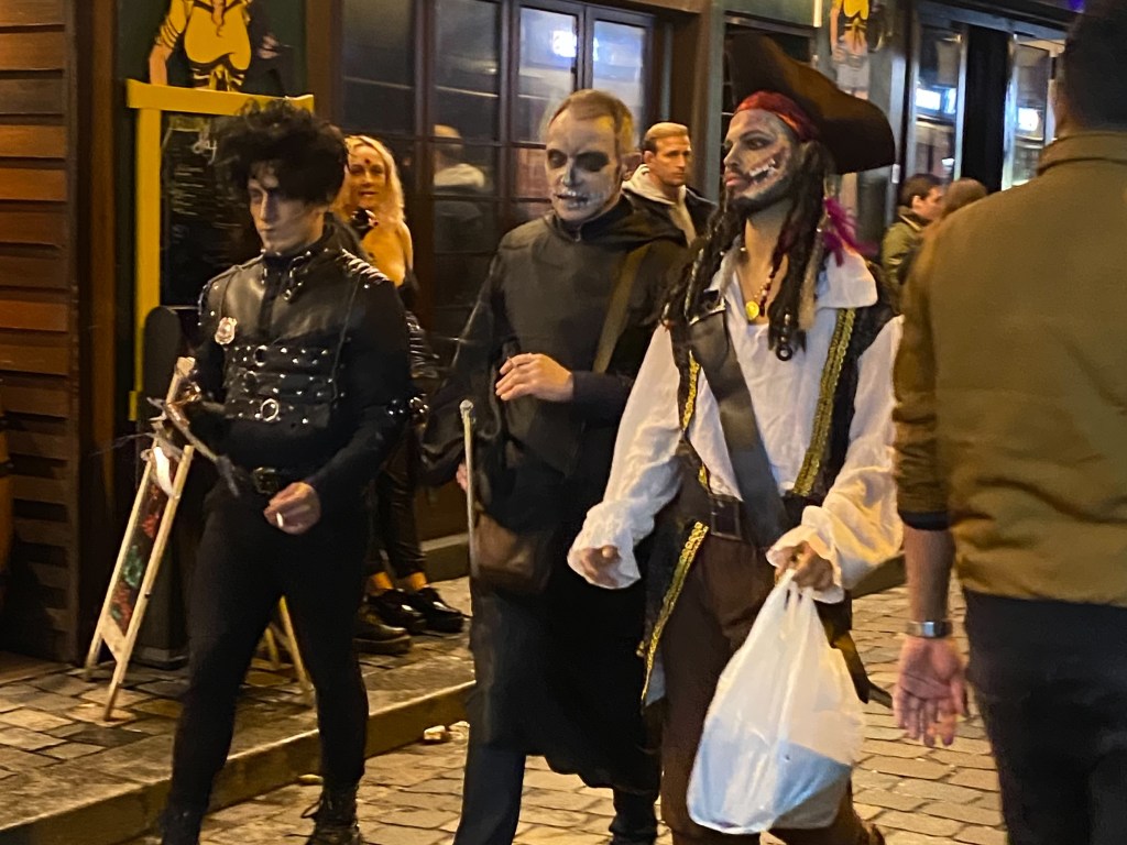 Some Parisians celebrate Halloween as if this was a French tradition. I met this group of disguised men rue de Lappe, a street of bars and clubs. November 2021.