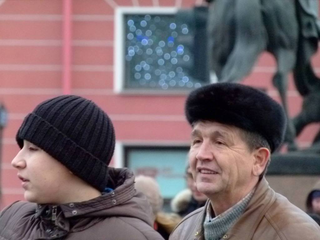 Cela semble peu courant de voir des Russes souriants dans la rue. J’ai croisé cet homme et son fils sur le pont Anitchkov, le plus ancien et plus célèbre pont de Saint-Pétersbourg avec ses quatre sculptures de chevaux. Janvier 2004.