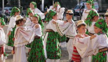 In the heart of Bucharest, children in colorful traditional Romanian attire perform a local dance, celebrating the rich folklore of their heritage amidst the bustling city surroundings. The bright green skirts and embroidered clothing contribute to the spectacle. September 2023. Au cœur de Bucarest, des enfants vêtus de tenues traditionnelles roumaines colorées exécutent une danse…