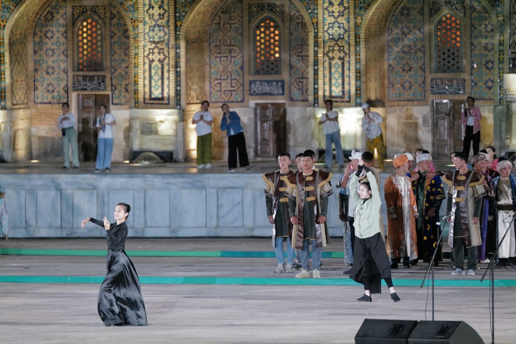 On the splendid Registan Square, musicians and dancers are rehearsing for the opening ceremony of the Sharq Taronalari (‘Melodies of the East’) dance festival. The festival will take place in two days and is a major event in Central Asia. August 2024.