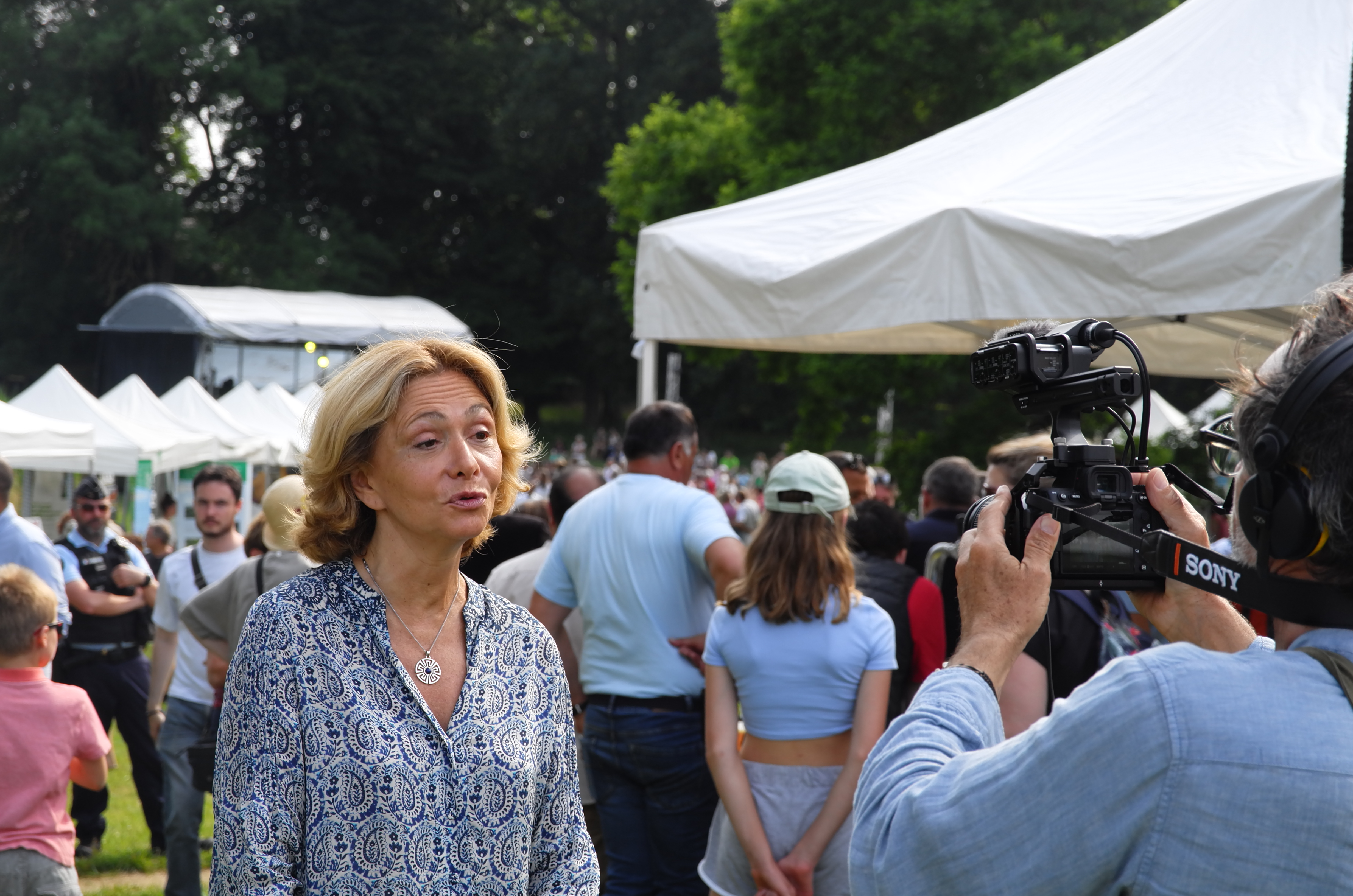 In Théméricourt, in the park of the old castle where the former president of Haiti, Jean-Claude Duvalier, once lived, the 30th anniversary of the Vexin Français Regional Natural Park is being celebrated. The president of the region, Valérie Pécresse (born in 1967), is being filmed for a promotional video. June 2025.