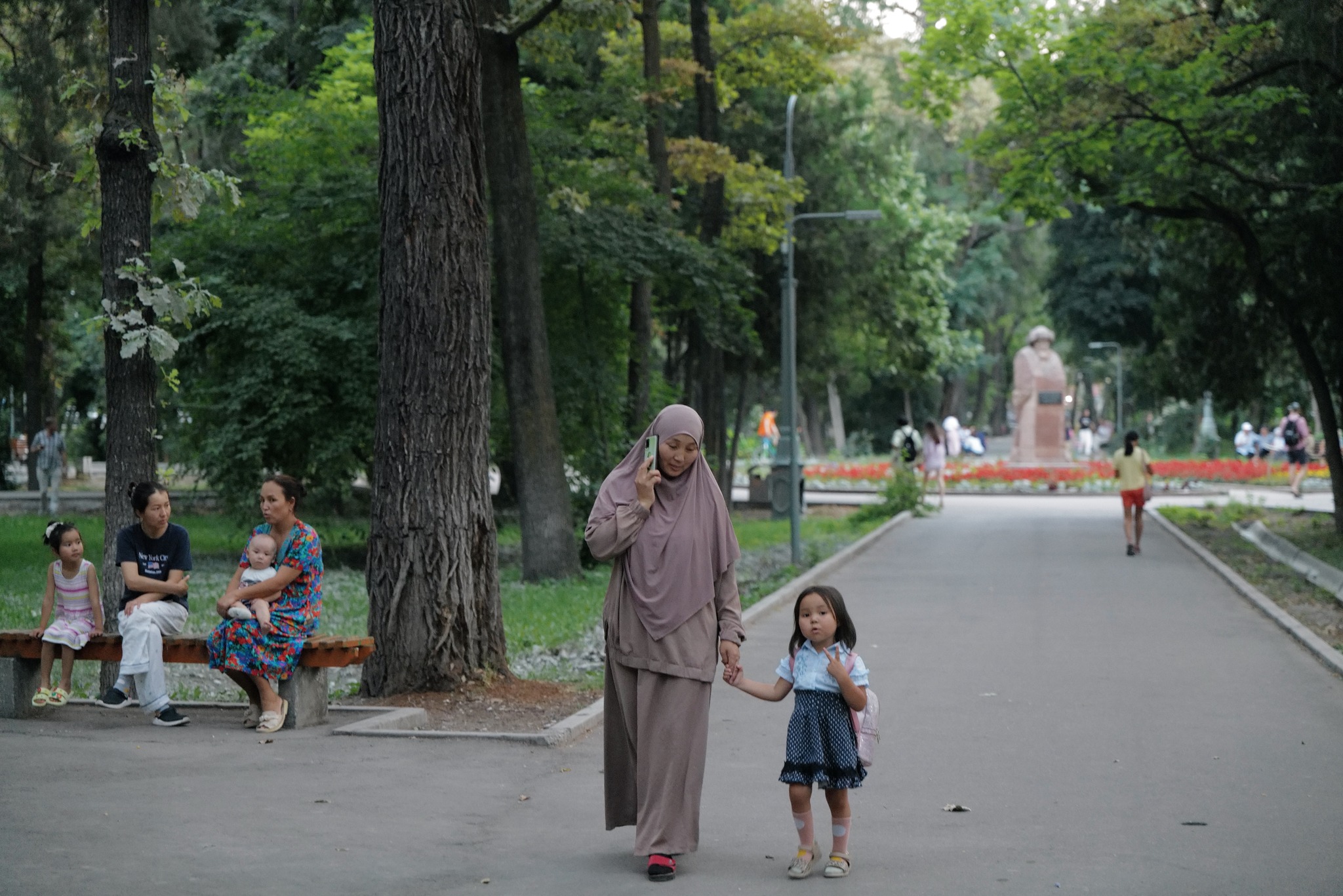 Summer nights, the residents of Bishkek enjoy getting some fresh air in one of the many parks in the city, a legacy of the Soviet era. August 2024.