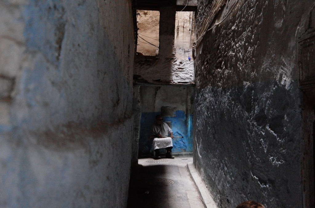 Dans les ruelles étroites de la médina de Fès el Bali, on aperçoit de mystérieuses silhouettes, cachées dans l’ombre. Octobre 2022.