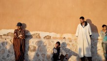 Mirleft is perched on top of the gigantic ocher-colored cliffs bordering the ocean. Surfers enjoy the waves. Surfers wear wetsuits because the water remains very cold. April 2022. Mirleft est perché au sommet de gigantesques falaises ocre qui bordent l’océan. Les surfeurs profitent des vagues. Ils portent des combinaisons car l’eau reste très froide. Avril…